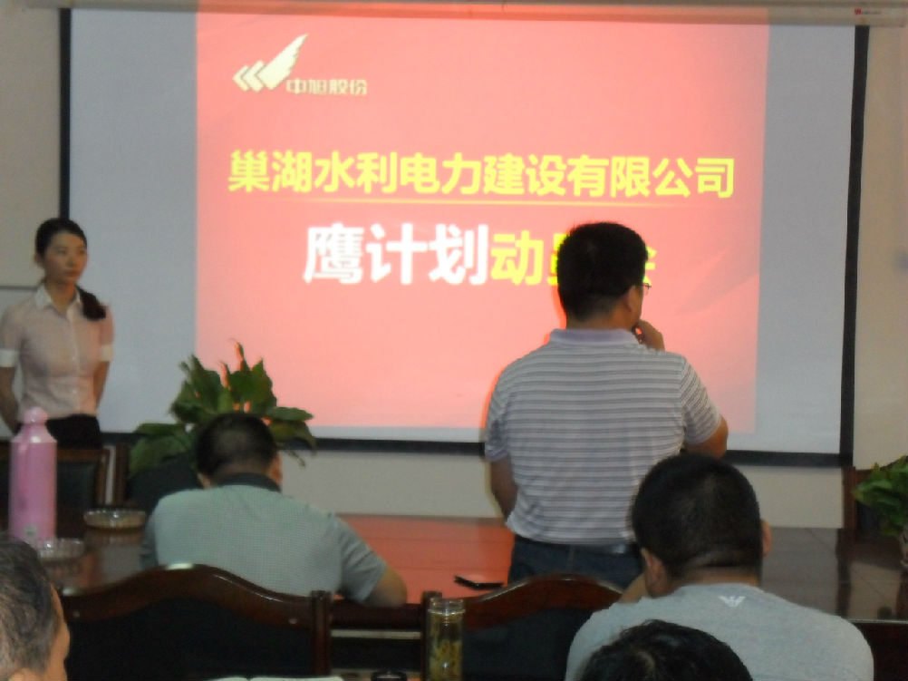 2013年8月13日上午8:30分在公司六樓會議室由深圳中旭公司舉行巢湖水利電力建設有限公司實效管理“鷹計劃”啟動會,公司各部門及實驗室等全體人員參加了該會。會上由中旭公司羅天熙、任潔兩位老師給公司“鷹計劃”執行前作了詳細動員。