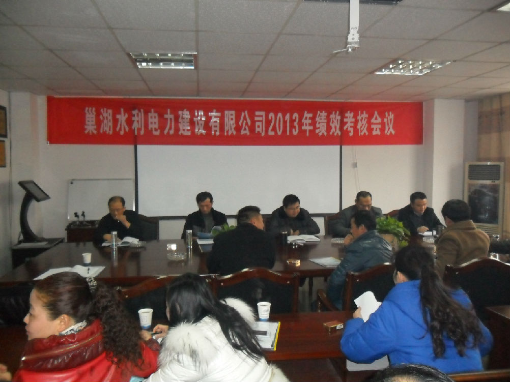 巢湖水利電力建設有限公司2013年績效考核會議于2014年元月4日上午在公司六樓會議室舉行,宋國華同志主持了會議,并對績效會議作動員。圖為2013年績效考核會議現場。