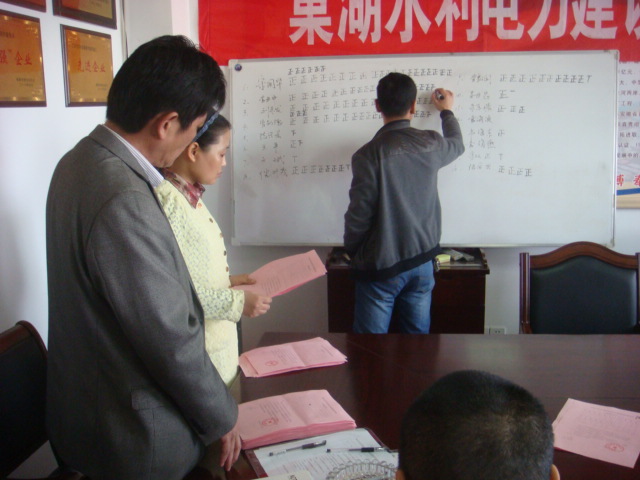 巢湖水利電力建設(shè)有限公司換屆選舉股東會(huì)于2015年4月12日9時(shí)在公司會(huì)議室召開,會(huì)議由宋國(guó)華同志主持。經(jīng)現(xiàn)場(chǎng)股東投票表決產(chǎn)生董事如下:宋國(guó)華、劉來(lái)發(fā)、李業(yè)中、曾勛德;由董事推選宋國(guó)華為董事長(zhǎng)。經(jīng)現(xiàn)場(chǎng)股東投票表決產(chǎn)生監(jiān)事為李良潤(rùn)。