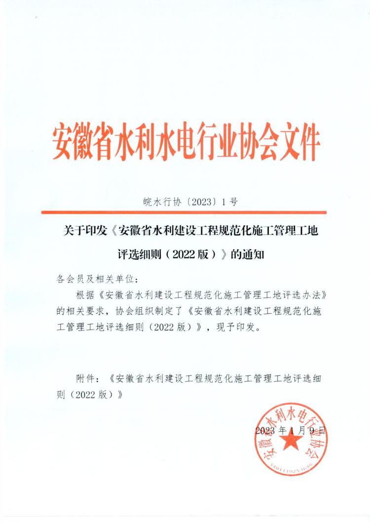 《安徽省水利建設(shè)工程規(guī)范化施工管理工地評(píng)選細(xì)則(2022版)》